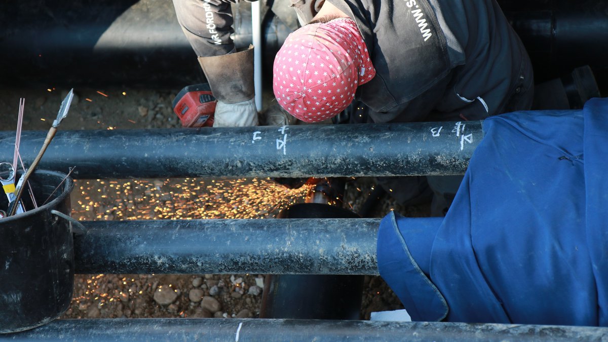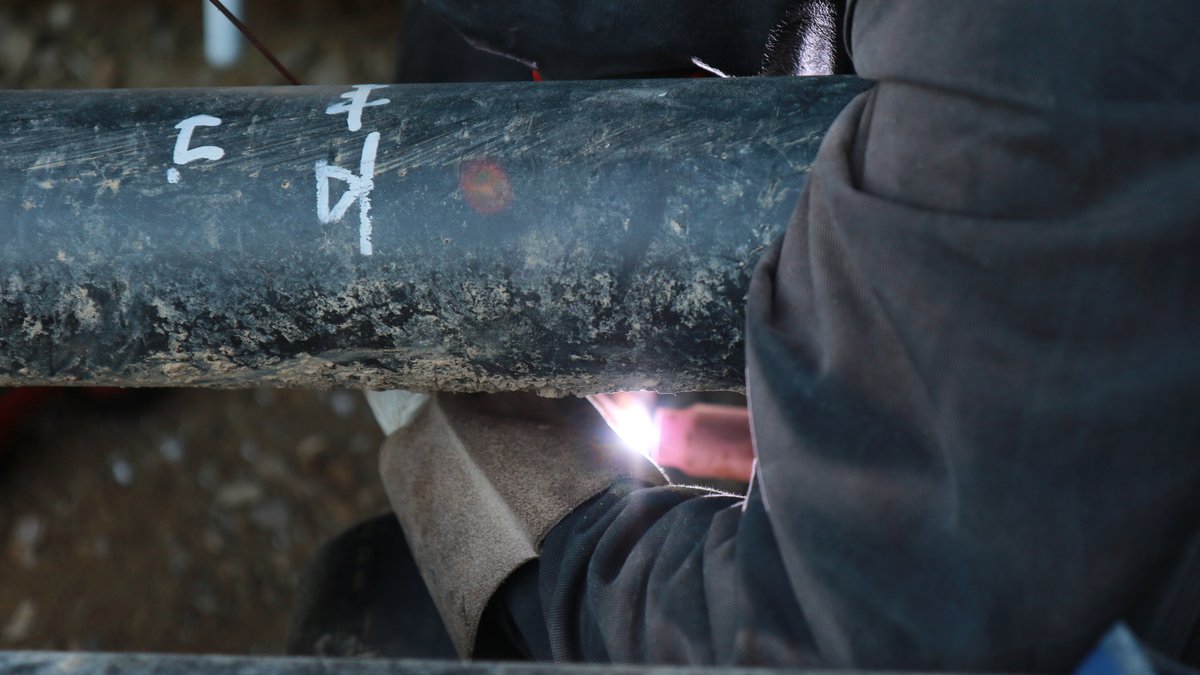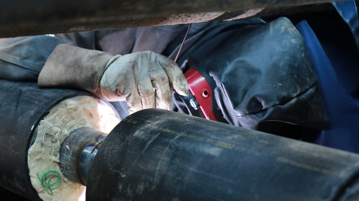 Auf den Bildern ist zu sehen, wie die Fernwärmeleitungen direkt in der Baugrube millimetergenau zusammengeschweisst werden. Vor dem Zuschütten der Gruben wird jede Schweissnaht nicht nur optisch geprüft, sondern zusätzlich geröngt. Denn: Versorgungssicherheit ist kein Zufall.
